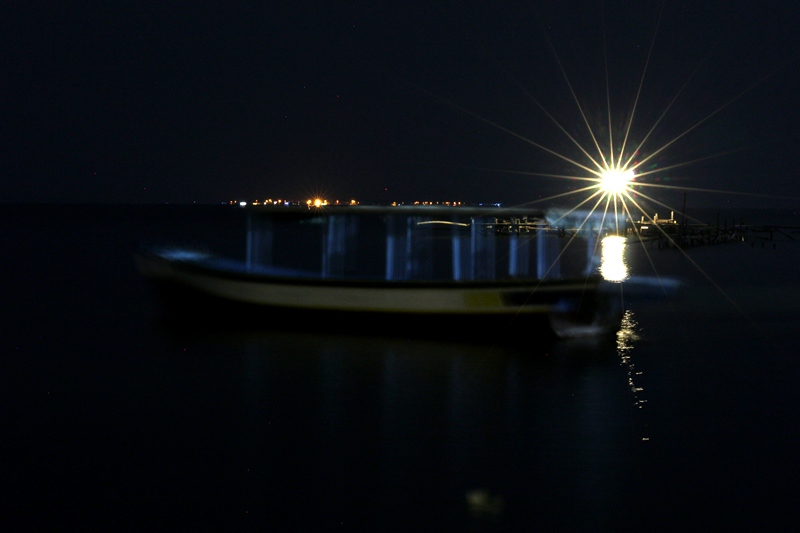 Perahu Nelayan Malam Gelap Penangkapan Ikan Cahaya Lampu Air Refleksi Tenang Diam Pikist